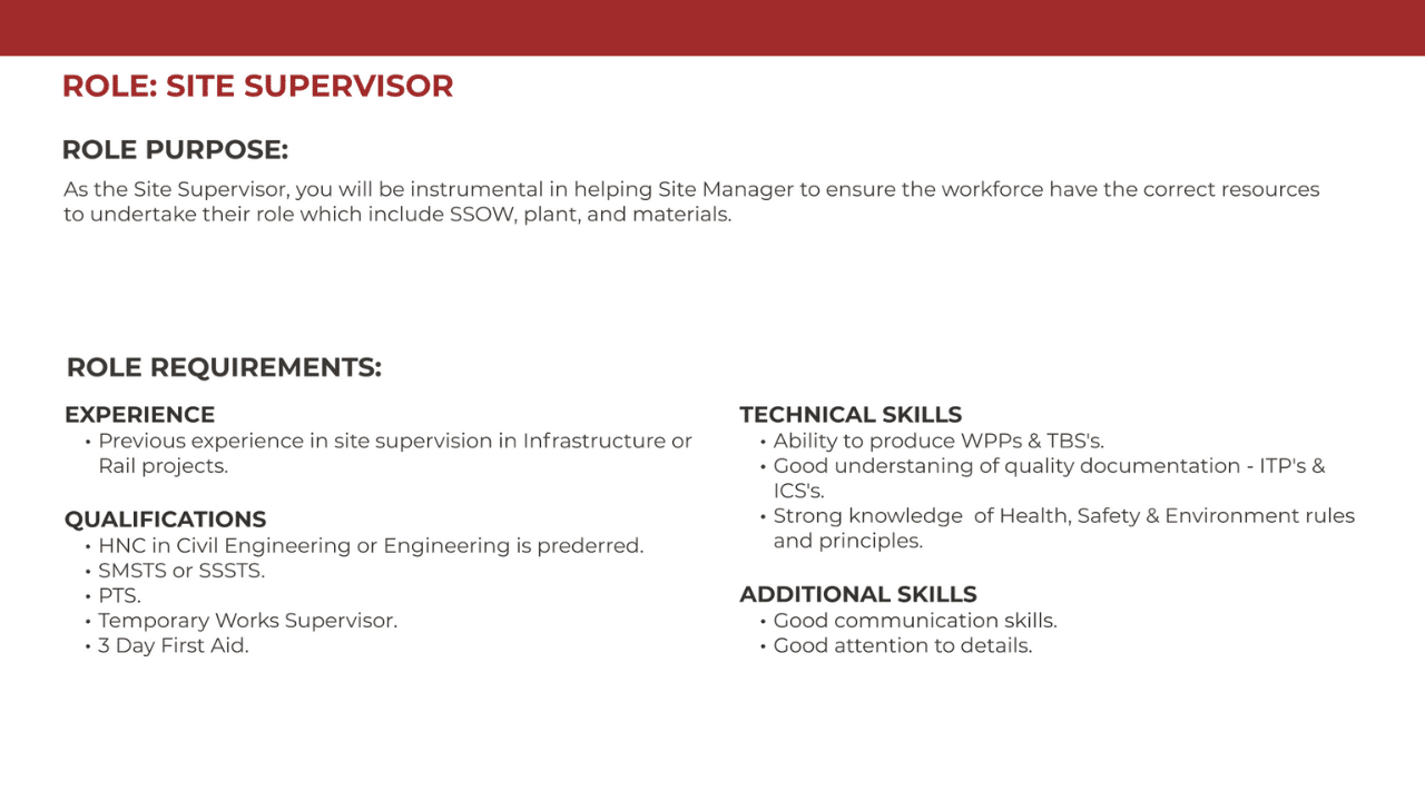 Candidate Profile: Experienced operative with over 10 years on-site but limited supervisory exposure.