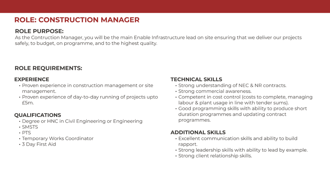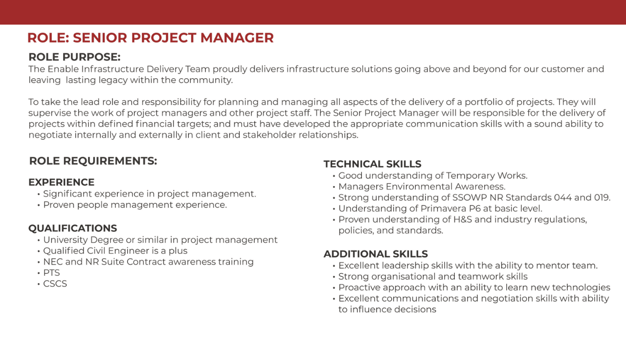 Take your construction, engineering, or infrastructure career to the next level with Enable Resourcing. As part of the Enable Group, we’re more than just a recruitment agency – we’re your partner in long-term career success.